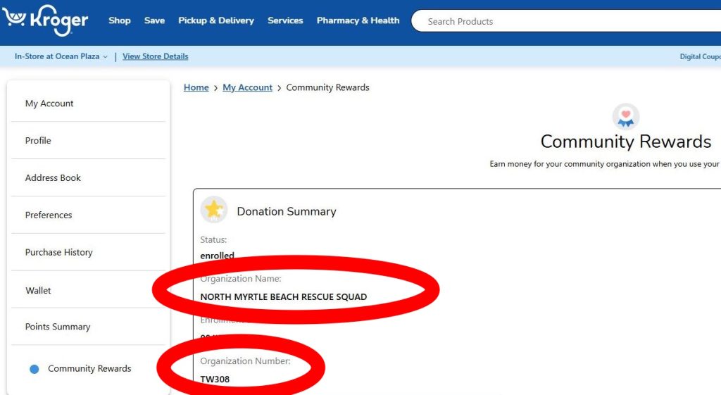 When you shop at Kroger and use your Kroger Rewards card, Kroger will make a small donation to the North Myrtle Beach Rescue Squad. There is absolutely no cost to you and it happens automatically. Here’s how to sign up.